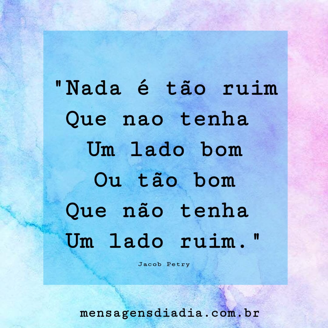 “Nada é tão ruim que não tenha um lado bom ou tão bom que não tenha um lado ruim.”