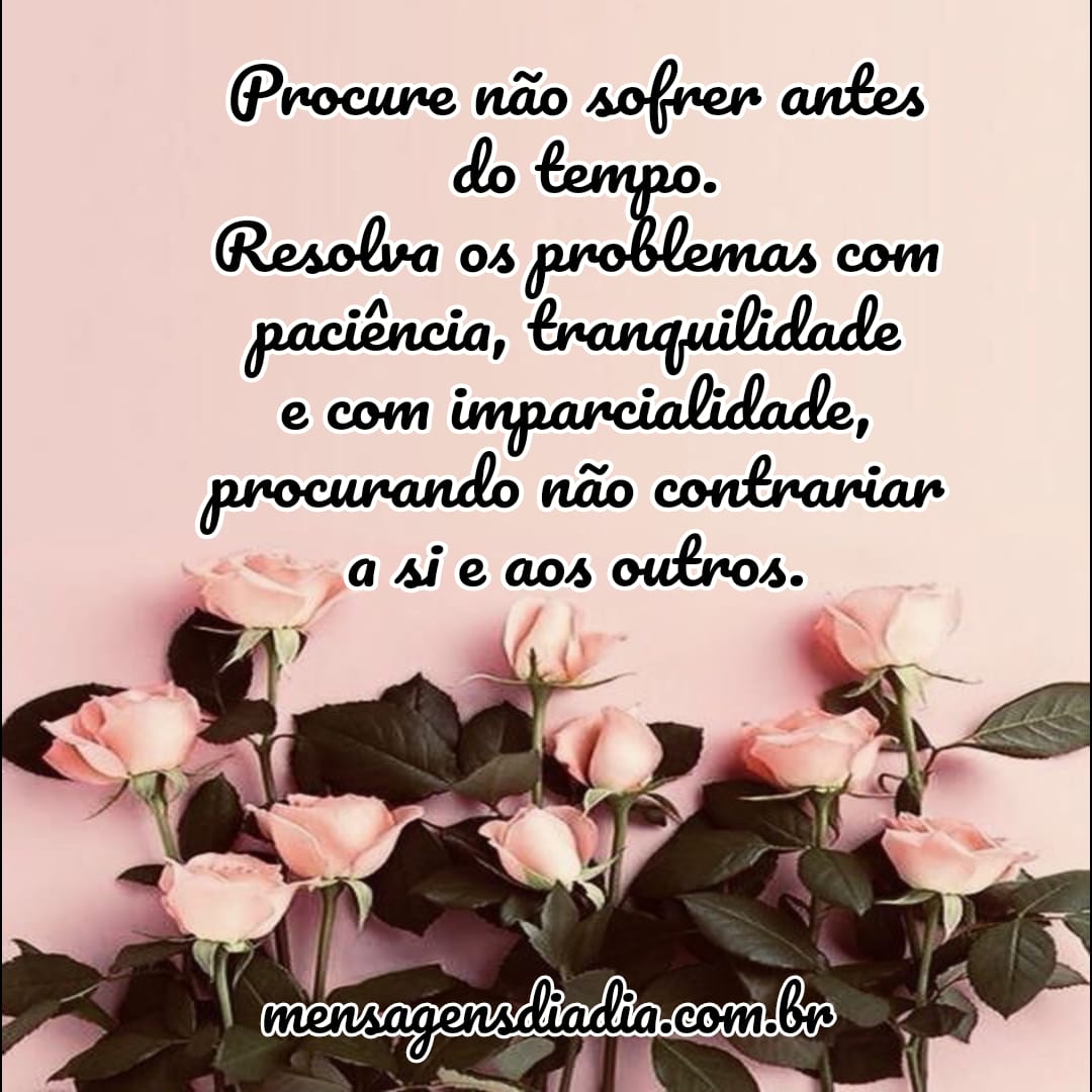 Procure não sofrer antes do tempo. Resolva os problemas com paciência, tranquilidade e com imparcialidade, procurando não contrariar a si e aos outros.