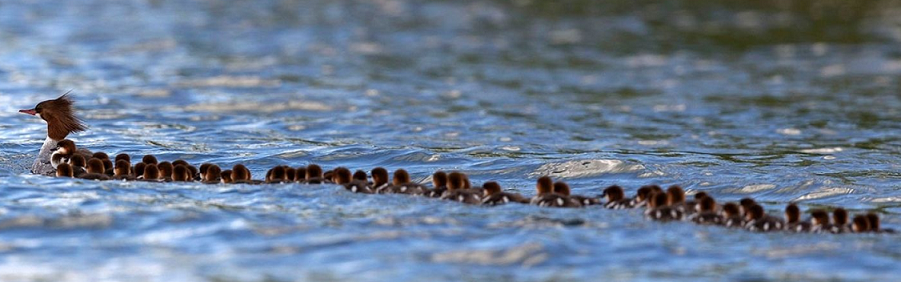 Mãe pata nadando com bebês no lago: Uma aventura no lago com muitos patinhos. Veja o vídeo: Logo que Cizek fotografou pela primeira vez esta