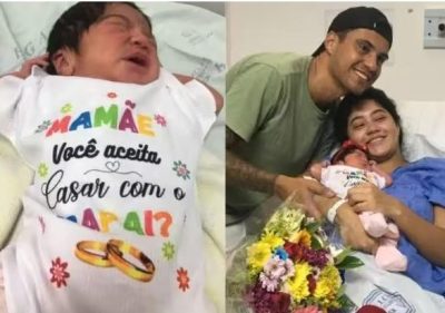 “Mamãe, você aceita casar com o papai?”. Foi assim que o pai de uma bebê recém-nascida em Santos, litoral de São Paulo, escreveu na roupinha