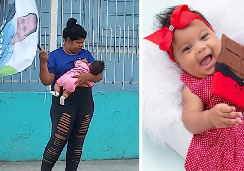 A imagem de uma jovem mãe solo trabalhando com bandeirinha eleitoral enquanto carrega e amamenta a filha está emocionando internautas, que estão se unindo para ajudá-la. Josiane