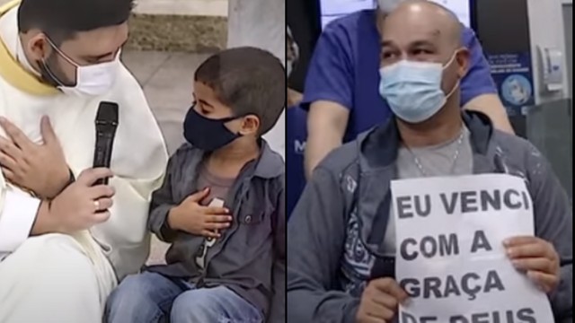 Menino interrompe missa para pedir oração a padrinho intubado com Covid-19; vídeo mostra reencontro após alta