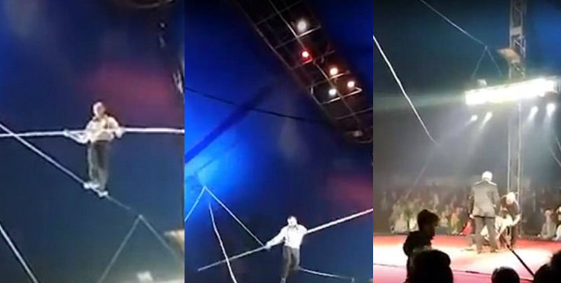 Um trapezista passou por um susto na Rússia enquanto performava um número de dança a 10 metros de altura. A corda bamba na qual ele