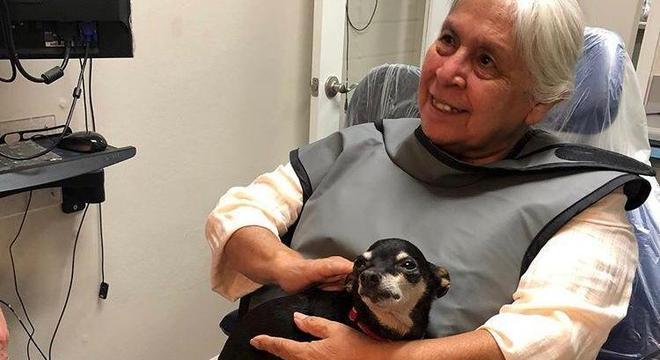 Chihuahua idosa ajuda acalmar pacientes que têm medo de dentista