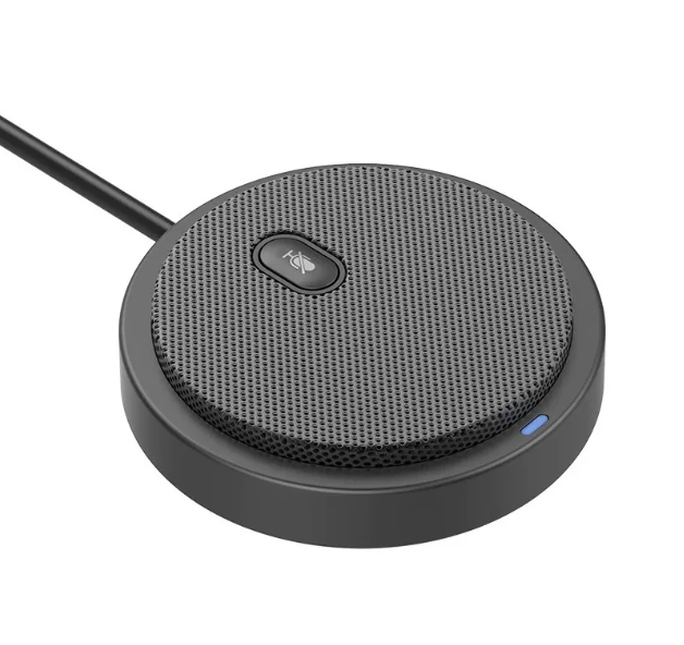 É um microfone pensado para reuniões e conferências, que capta som em 360° (omnidirecional) e costuma priorizar praticidade (plug & play) e botão de mudo no próprio corpo.