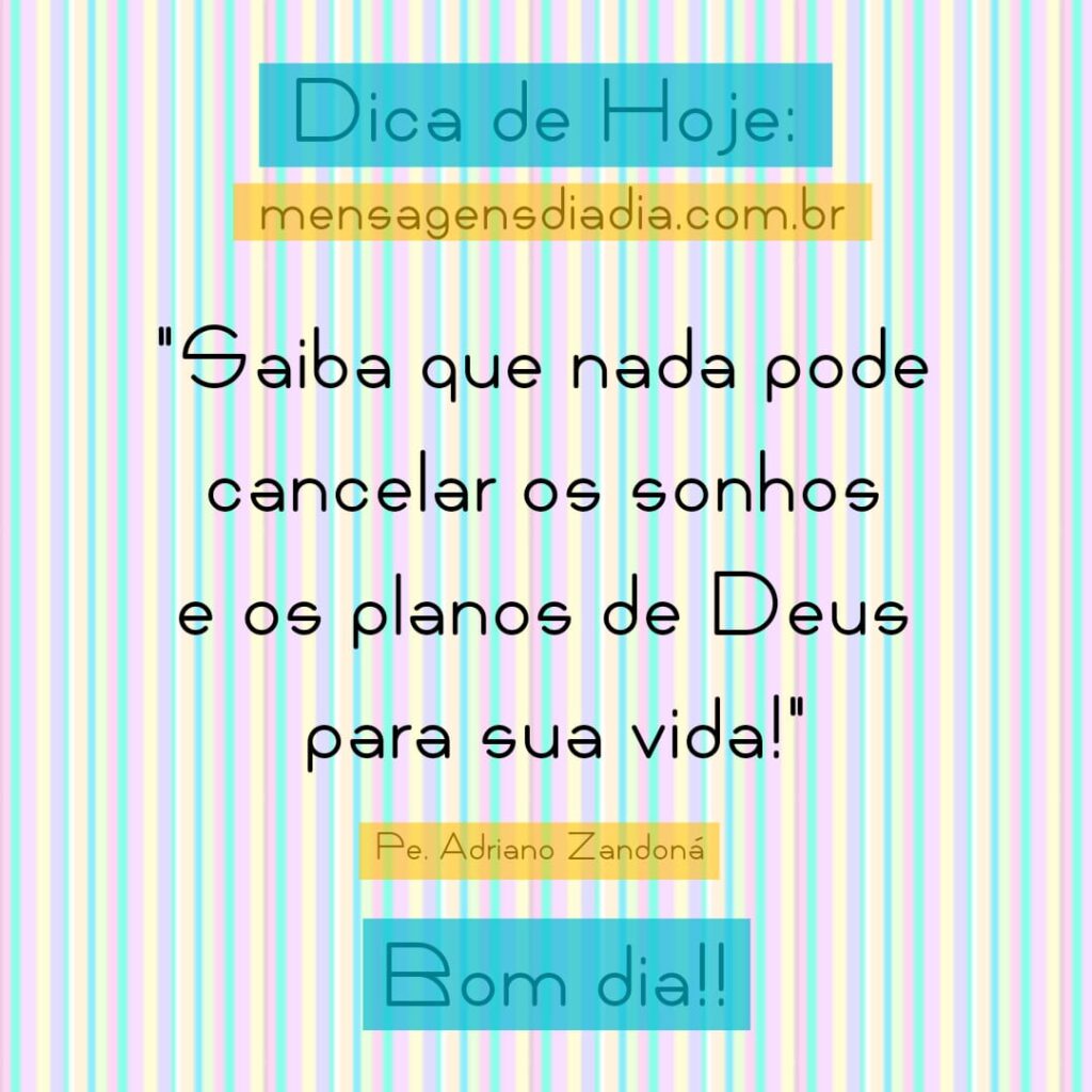 Dica de Hoje: “Saiba que nada pode cancelar os sonhos e os planos de Deus para sua vida!” Pe. Adriano Zandoná