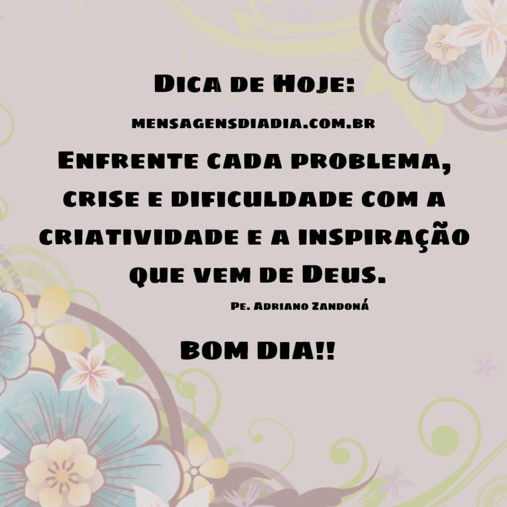Dica de Hoje: Enfrente cada problema, crise e dificuldade com criatividade e a inspiração que vem de Deus. Bom dia!!
