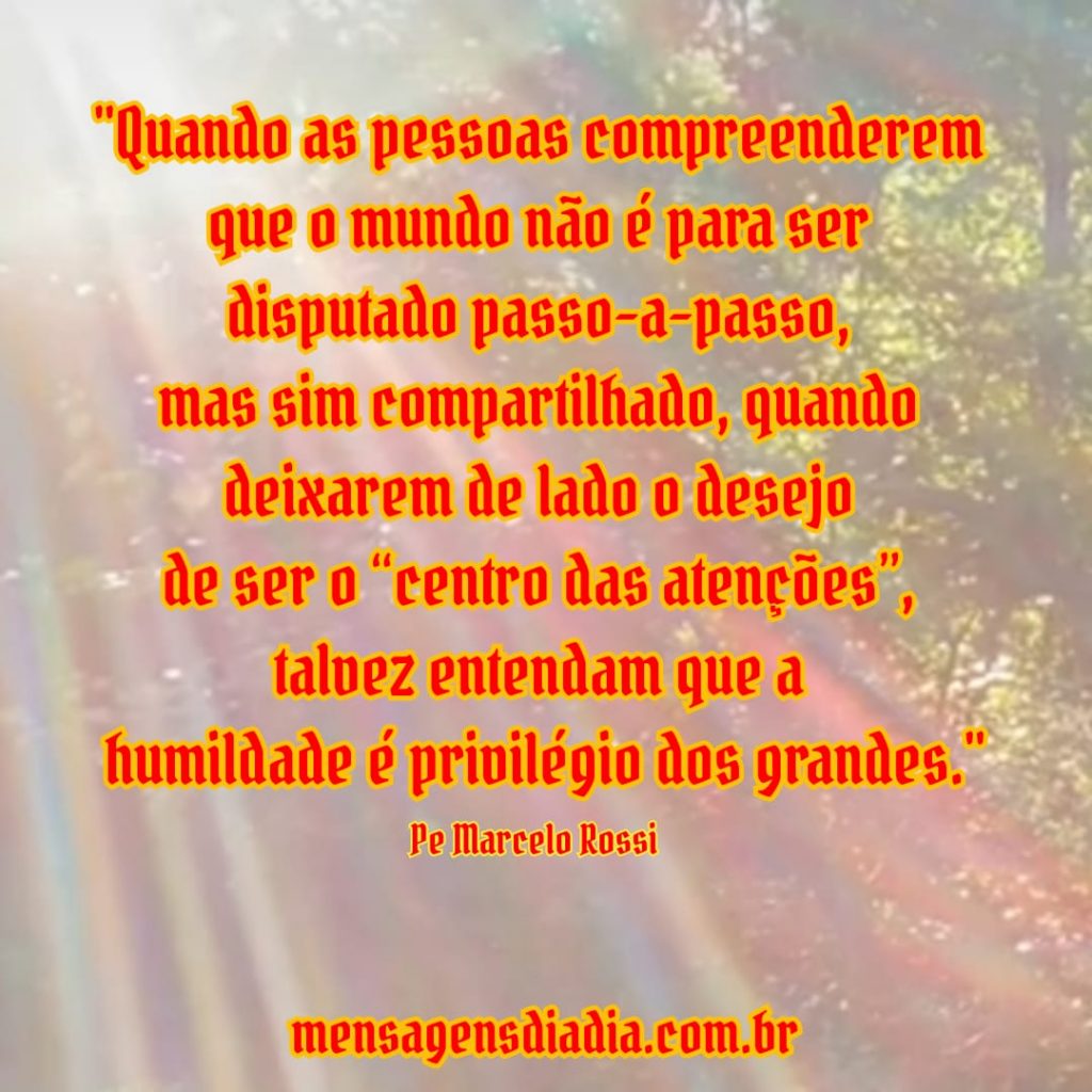 ‘Quando as pessoas compreenderem que o mundo não é para ser disputado passo-a-passo, mas sim compartilhado , quando deixarem de lado o desejo de ser o “centro das atenções”, talvez entendam que a humildade é privilégio dos grandes.”