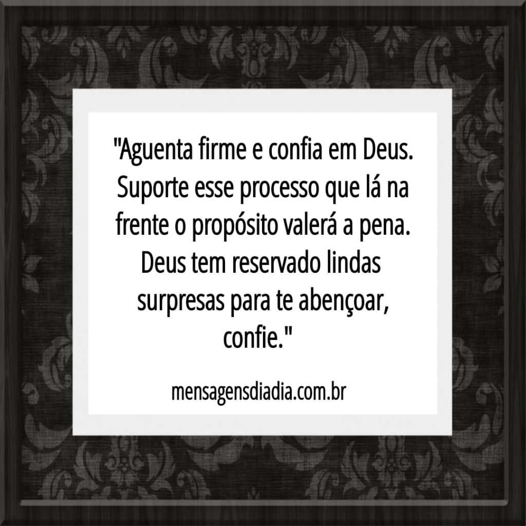 “Aguenta firme e confia em Deus. Suporte esse processo que lá na frente o propósito valerá a pena. Deus tem reservado lindas surpresas para te abençoar, confie.”